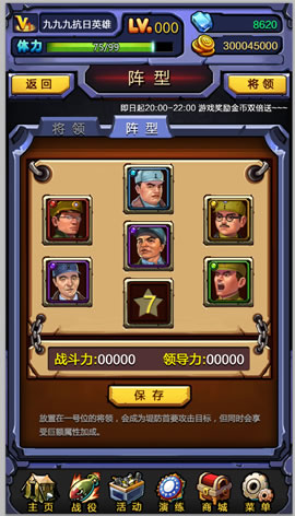 1.布置阵型:《大抗战》阵型共有7个阵位,每次允许6员将领派遣上场。一号位置将成为敌军优先攻击位置,如何扬长避短规避对方阵型的火力交叉点,成为你对战胜利的关键。