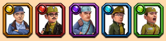 将领根据获得方式和稀有度,分为不同的类型和品质,最高为金色,其次为红色、紫色、蓝色、绿色,玩家可以通过卡牌左上方的宝石颜色来进行区分,将领可以通过卡牌抽取与副本掉落来获得,品质越高,将领的属性越好,战斗力越强。